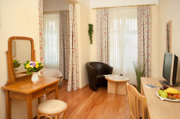 This eco-friendly 3* hotel is conveniantly located in the historical central district of Josefstadt (Vienna's 8th district), within walking distance from the famous sights of the Ringstraße like the Burgtheater, Rathaus, Hofburg, Parlament, museums and other sights. Numerous sights and public transport lines in the city centre are within short walking distance from the hotel. The building was built in Biedermeier style in the 19th century, the are was back then just a suburb of the city of Vienna. The hotel was established also in the 19th century and is a registered historic monument. The hotel offers 39 non-smoking doubles and singles. The rooms are equipped with ensuite bathroom (shower or tub)/ WC, cosmetic mirror, hair dryer; telephone, radio, flat-screen TV SAT, clothesline. The rooms are hypoallergenic - all rooms are allergy-friendly (hardwood floors, non-allergenic bedding).
