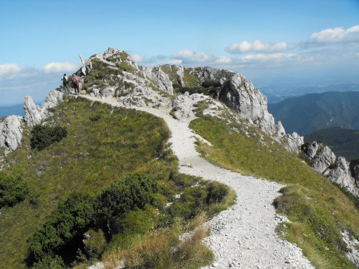 Trekking paths in the woods, canyons, meadows, rocky path on the ridge, climbing with the assistance of chains