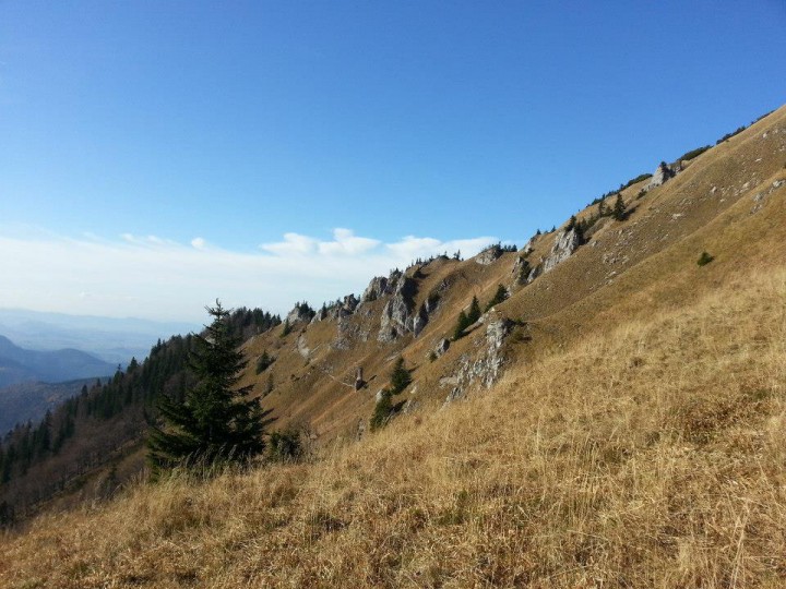 Trekking paths in the woods, trekking on the ridge of the Lesser Fatra - grassy terrain, rocks