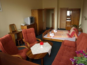 It offers 60 rooms – double rooms (some of them with extra beds) and family rooms, and 15 bungalows with double or triple rooms of a lower standard. These cottages are located about 70 m from the hotel.