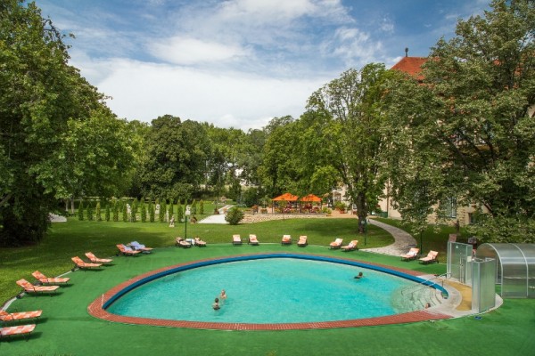 Thermal mineral water - it is ten springs with an average 1,500 mg of minerals in 1 l of mineral water. The water springs from tectonic faults of about 2000 m depth, is trapped at a depth of 60 m, which guarantees a constant chemical composition and temperature. The temperature of the springs is 67 to 69 ° C. It is medium mineralized, sulphate-bicarbonate, calcium, sodium, sulphurous, hot water. It is used mainly for bathing, but also for drinking cure.